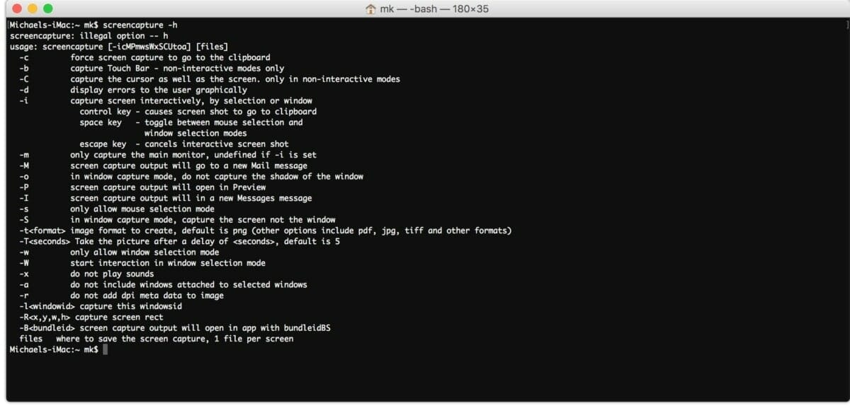 As you can see, there are a lot of choices at your disposal if you choose to go the command line route. I have never used “screencapture,” but it’s good to know it is there, in case I ever need it.
